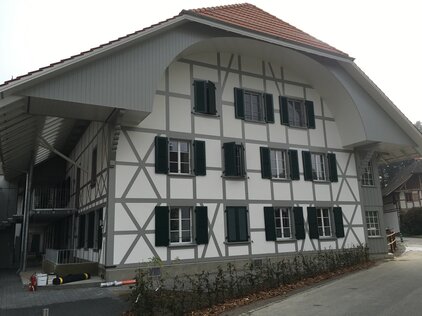 Auf dem geschichtsträchtigen Bartlome Gut - benannt nach den ehemaligen Besitzern, die über Generationen das Bauerngut bewirtschaftet haben - entstand an der Kipfgasse 7 & 9 in der beliebten Gemeinde Münchenbuchsee ein einmaliges und vielseitiges Angebot an unterschiedlichen Eigentumswohnungen und Einfamilienhäusern. In Übereinstimmung mit den Zielen der Gemeinde, die historische Bausubstanz möglichst zu erhalten, wurde das Bauernhof-Ensemble zu einem echten Bijou umgebaut. So entstand eine Symbiose von Alt und Neu. Seit dem Sommer 2016 wohnen im Bartlome Gut unterschiedliche Generationen zusammen: vom Single, über junge Familien mit Kindern, über Paare ohne Kinder bis zu Grosseltern, die ihre Enkeln zu Besuch haben!
